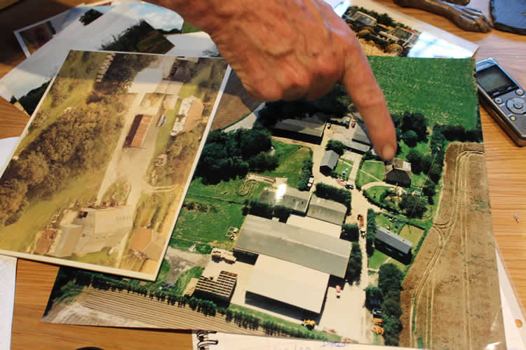 (Looking through photographs and maps of the farm)