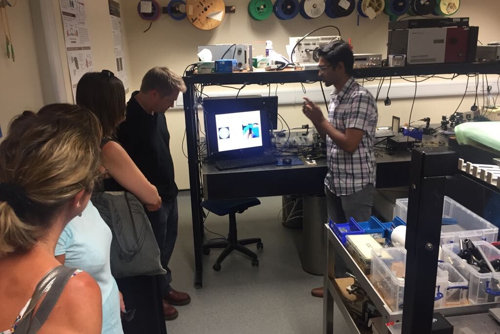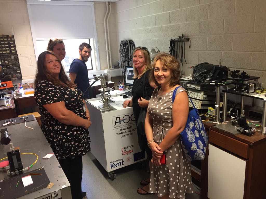 Our visitors had a chance to see a presentation by Prof Adrian Podoleanu on the group’s achievements, see live demonstrations of Optical Coherence Tomography and microscopy systems, and to discuss with PhD students and postdoctoral researchers on topics related to high resolution imaging.