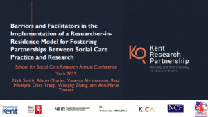 Smith et al (2025) Barriers and Facilitators in the Implementation of a Researcher-in-Residence Model for Fostering Partnerships Between Social Care Practice and Research. NIHR SSCR Annual Conference, York, 20-21 May 2025.