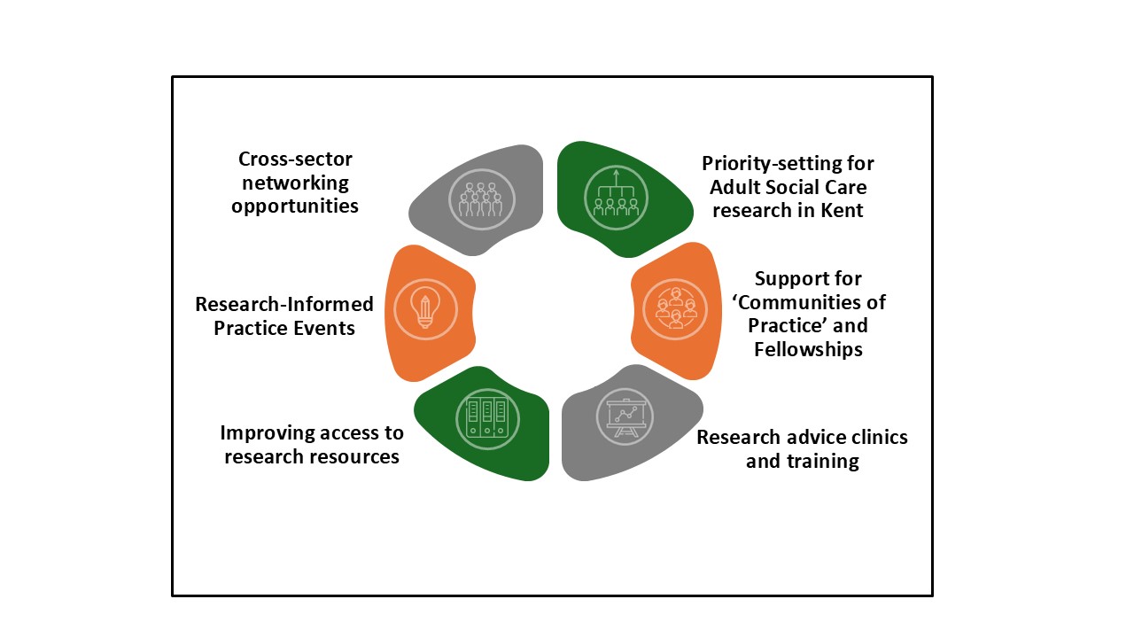We did all of the following to build research capacity in adult social care across Kent.