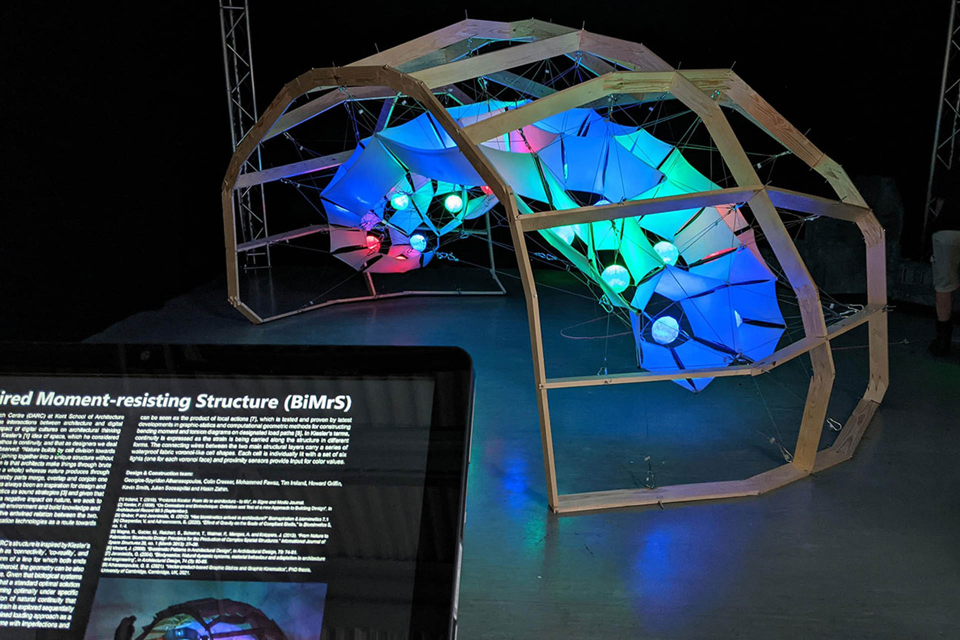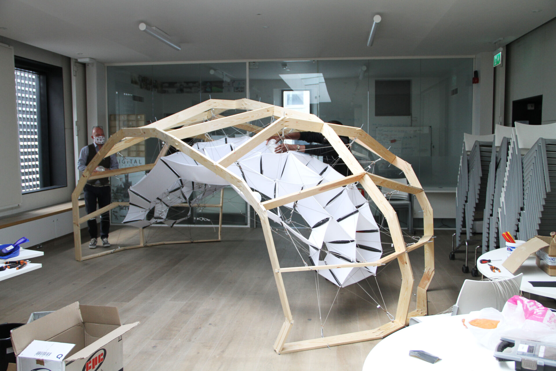 The Digital Architecture Research Centre (DARC) at Kent School of Architecture & Planning (KSAP) explores the intersections between architecture and digital technologies to investigate the impact of digital cultures on architectural thinking and practice. Inspired by Frederick Kiesler’s [1] idea of space, which he considered continuous or endless, the Centre’s ethos is continuity, and that as designers we deal with forces, not objects. As Kiesler observed: “Nature builds by cell division towards continuity whilst man can only build by joining together into a unique structure without continuity”[2]. For Kiesler, the distinction is that architects make things through brute force (connecting parts together to form a whole) whereas nature produces through a process of continuous construction whereby parts merge, overlap and conjoin one another. As the study of natural systems has always been an inspiration for design and architectural research has adopted biomimetics as sound strategies [3] and given that human construction activities tend to have a negative impact on nature, we seek to learn from the natural world to enhance the built environment and build knowledge and understanding to promote a cleaner and positive entwined relation between the two. We see digital design methodologies and fabrication technologies as a route towards this aim.
