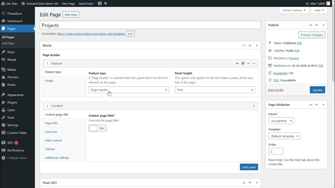 This version of the feature panel only has one additional field which is the “Link text”.