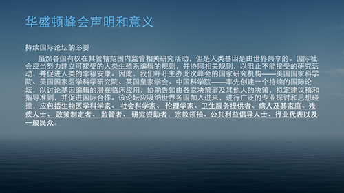 – 华盛顿峰会的意义在于,形成了国际科学界对于基因编辑研究的自我约束的共识,树立了“负责任的研究者”的形象。会议关注了公众的担忧,通过公众互动听取了公众的意见。通过对于体细胞编辑和生殖系编辑的区分,对基础研究和临床应用的区分,竭力避免公众对“基因编辑技术”的一揽子妖魔化。