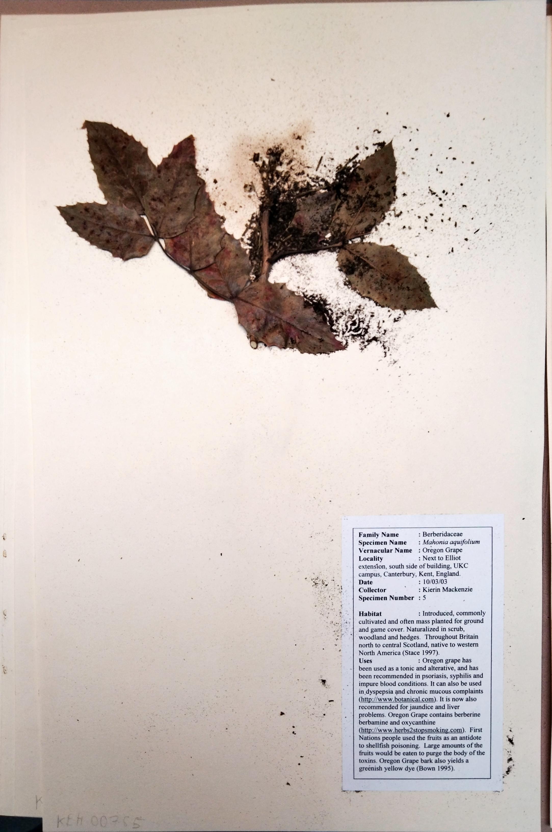 KM05 Mahonia aquifolium (Pursh) Nutt.