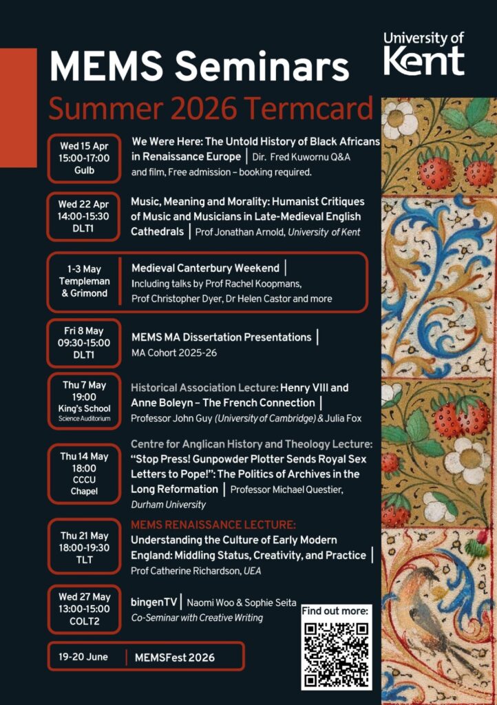 MEMS runs term-time seminars, workshops and trips, and the annual MEMS Fest. Many of these events are hybrid and open to all. To keep updated, please sign up below to become a MEMS Friend. We look forward to seeing you soon!