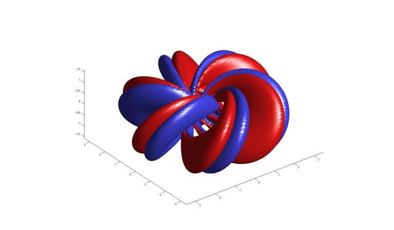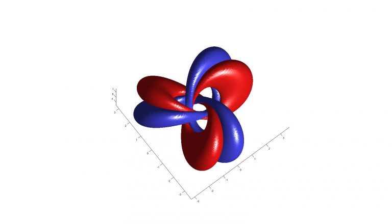 - Interlocking trefoil equipotential surfaces describing the topology of knotted electromagnetic radiation.