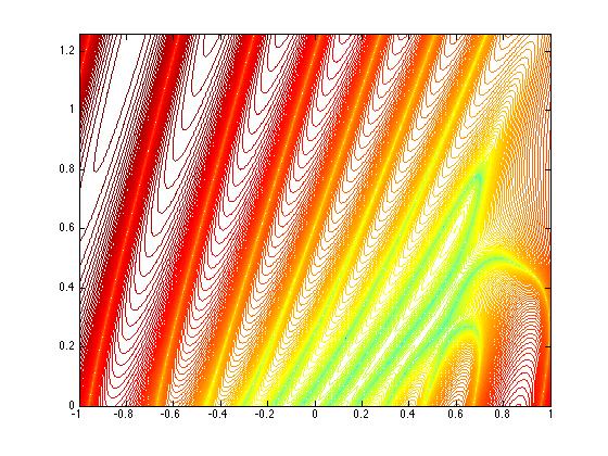 - Contour plot representing the time evolution of a quantum mechanical square wavepacket in a particle in a box potential.